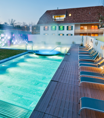 Im Thermalbad «Aquarena fun» dürfen Sie so richtig die Seele baumeln lassen. Mit grosszügigem Innen- und Aussenpool (35 Grad), 50 Meter langem Flussbad, Whirlpools, einer 65-m-Grottenrutsche sowie einem 25m- Aussenschwimmbecken stehen Spiel, Sport und Spass für die ganze Familie im Vordergrund. Das mineralienreiche Quellwasser hat eine angenehme Wirkung auf den gesamten Organismus.